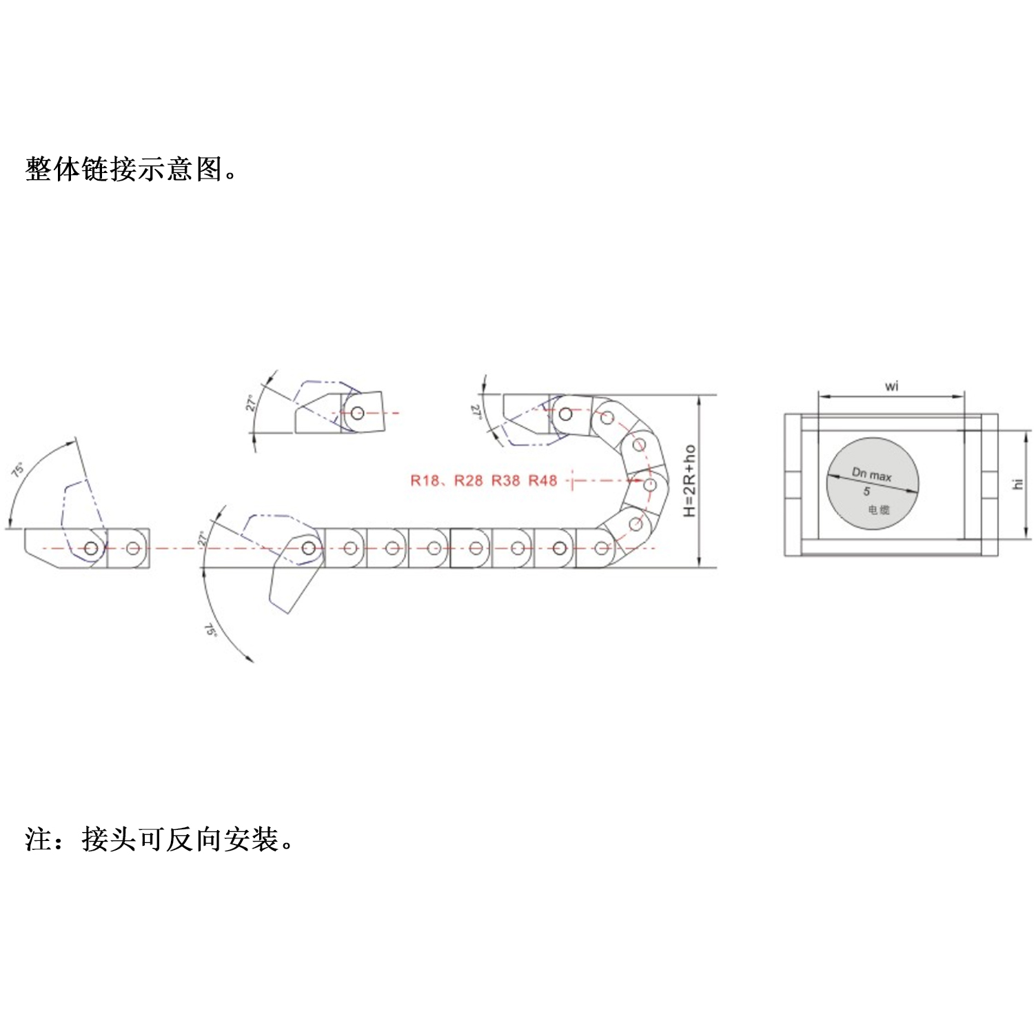 產(chǎn)品優(yōu)點(diǎn) 工程塑料拖鏈具有機(jī)械強(qiáng)度高,耐磨性好、抗沖擊能力強(qiáng),無論在室內(nèi)外溫度-40℃~+110℃的條件下,不易變形、老化,性能穩(wěn)定,使用壽命長,本廠品廣泛應(yīng)用于各類數(shù)控機(jī)床、工業(yè)自動化設(shè)備、工程塑料機(jī)械、電力自動化裝配線等各類機(jī)械電氣行業(yè)。